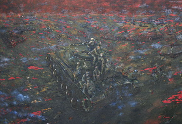 ציור החילוץ בקרב החווה הסינית של קובי לפיד. קובי לפיד שצייר במהלך מלחמת יום הכיפורים בפנקס קטן מצייר לאחרונה תמונות גדולות בשמן המבוססות על הרישומים במהלך המלחמה. זהו ציור שמן בגודל 220X150 , קובי עבד עליו כשנה, לא באופן רצוף כמובן. בתוכניתו של קובי לצייר עוד כמה ציורים בסדרה. קובי אומר כי "הצורך בציור, הוא חוב של כבוד לחברי הלוחמים". המניע "דוקא עכשו" הוא הכנס הגדודי "אשר הצית בי את הצורך לצייר".